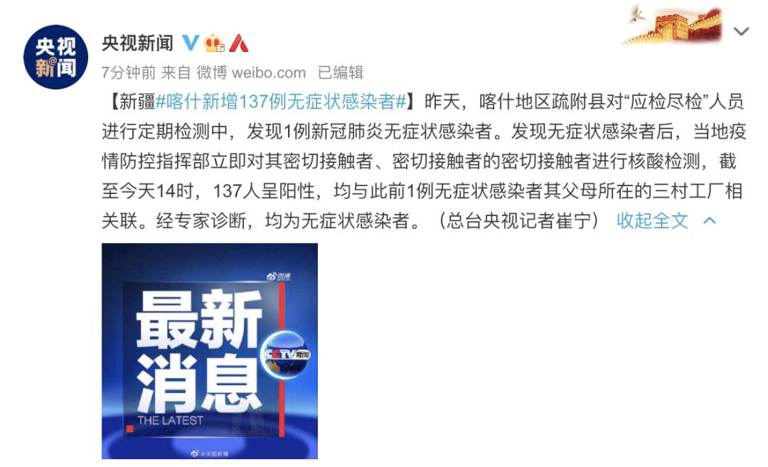 注意啦!注意啦!新疆喀什4地升为高风险地区,新增137例无症状感染者!