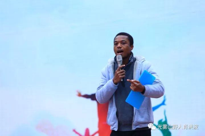 同学们在舞台上唱着英文歌曲,可惜野人就是听不懂