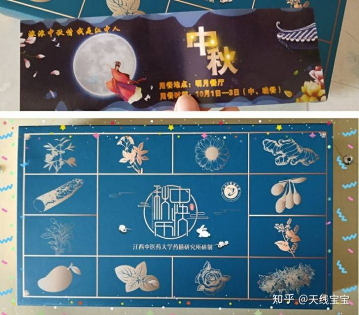 瞧瞧这高大上的外观,江西中医药大学不仅做饭可以,审美也在线。研究出来的月饼口味香甜馅料独特,羡慕江西中医药大学的同学徜徉在这美食的天堂啊。关键是人家的馅料。药膳出手,必是名品。玉竹玫瑰,陈皮海参。中秋佳节也不要忘了养生哦!