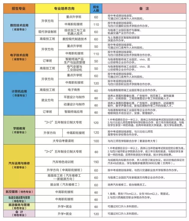 南溪职校2018年招生专业及选拔要求