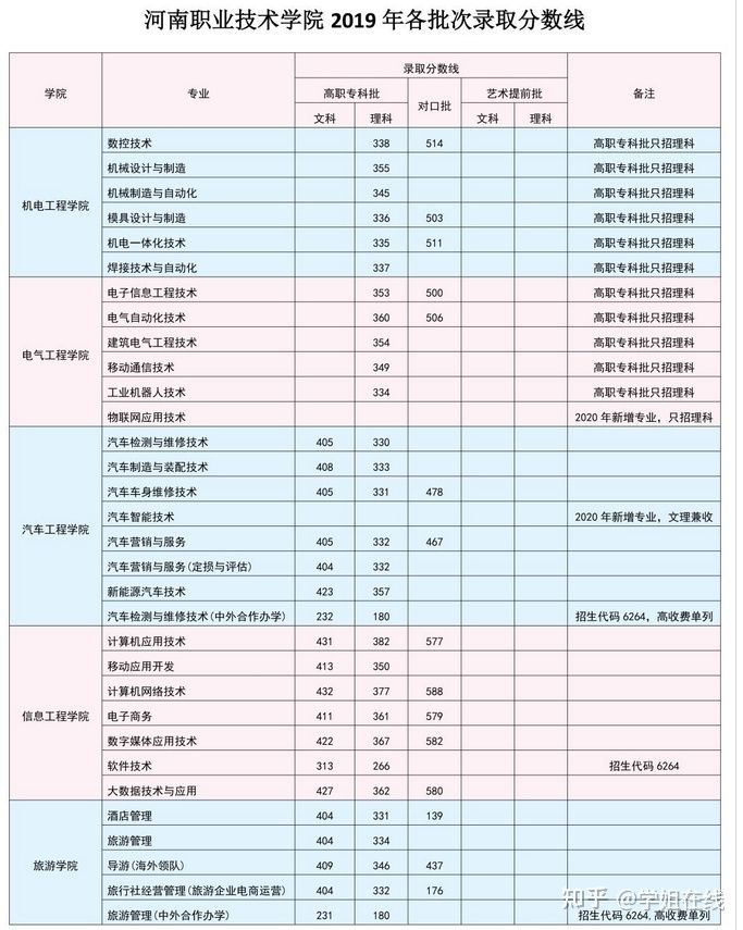 河南职业技术学院2019年河南各批次录取分数线