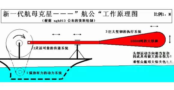 “航公”的船体由生铁和低碳钢制造,排水量10万吨。“航公”上没有任何电子设备,因此具备极强的抗干扰能力,照明设备是使用干电池的手电筒,不安装雷达,使用望远镜,水下装甲、外装甲(生铁)达到10米的厚度,鱼雷、飞机、导弹等常规武器均对其无法构成威胁。 “航公”的攻击武器十分可怕,是一根重达1000000吨的铁棒,由于常规攻击对其没有作用,因此“航公”在高速靠近对方后,用铁棍插入航母,使其丧失动力,然后在马达驱动下用铁棍进行连续攻击直至摧毁对手。