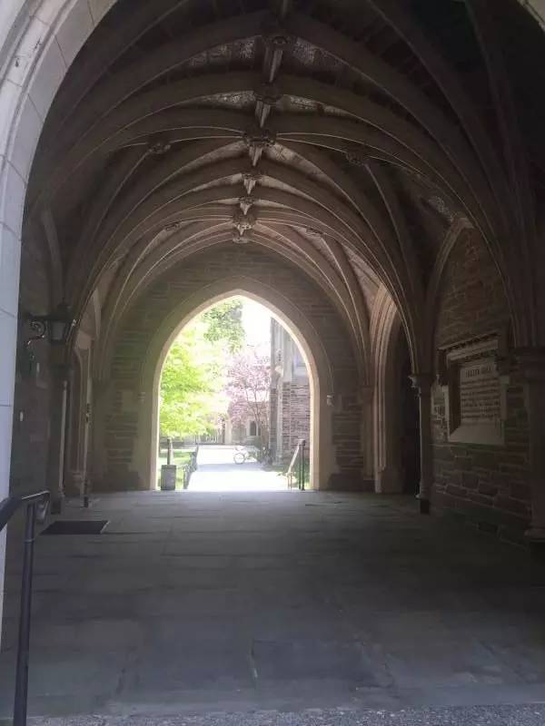 一)校区著名的长廊是教师与学生混合居住的地方,这个延续百余年的传统,目的是老师和学生可以随时讨论与学习。