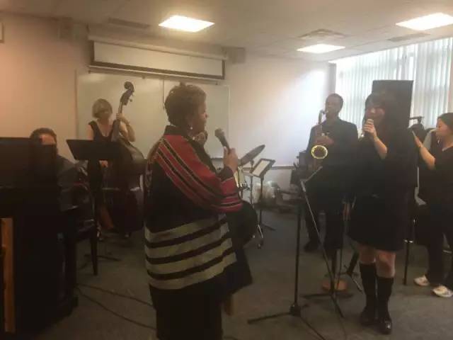 在福坦莫大学精心搭建的爵士乐课堂上(院方为了这一堂课特地在林肯中心借来的全套设备,并请来专业乐队),亲密接触了爵士乐——为的是学习其间的团队精神以及领导力。爵士乐与领导力,看待完全不相关的两件事完美结合,竟然给我们留下无比深刻的记忆。课程内容是大家先欣赏乐队的表演,体会乐手即兴发挥的情感以及团队配合;然后分组,现场选曲编曲填词,表演一段爵士乐。