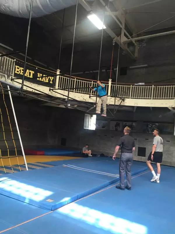 作为远道而来的特殊客人,受益于杨院长与西点多年的良好合作,我们享受了最高待遇:与西点的士官生们一起训练!在训练馆挑战空中飞人,与士官生一起穿越天梯…当然, 还有与教导主任一起在西点的校园里跑步!