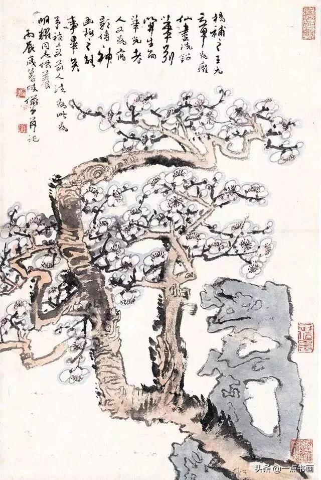 我第三节谈到的气象高华壮健,笔墨变化多方,韵味融液腴美,就是这些。在自己的创作中,也要努力追求,达到这个高度。所谓“与古人血战”应该和比我高的来衡量,那末永远不会满足,也就永远在向上。不能和低的比,沾沾自足,早年结壳,要引以为戒。