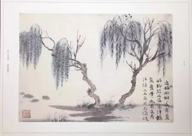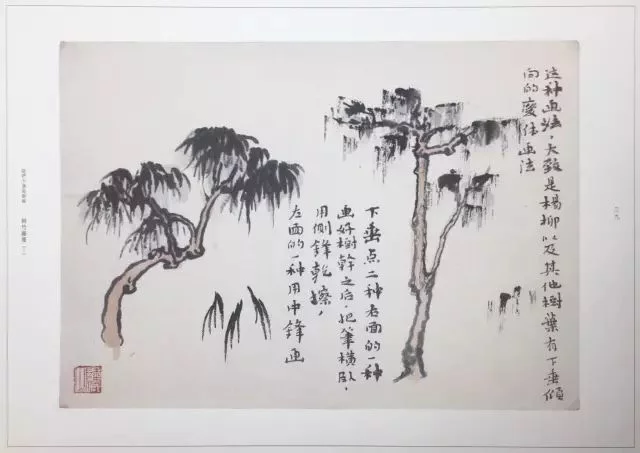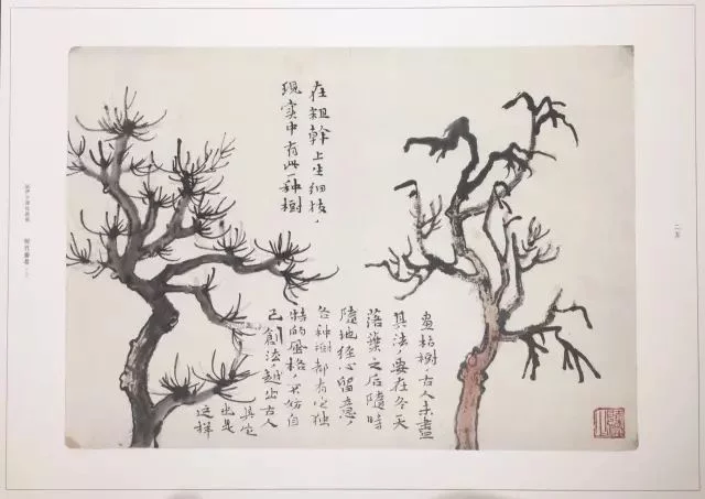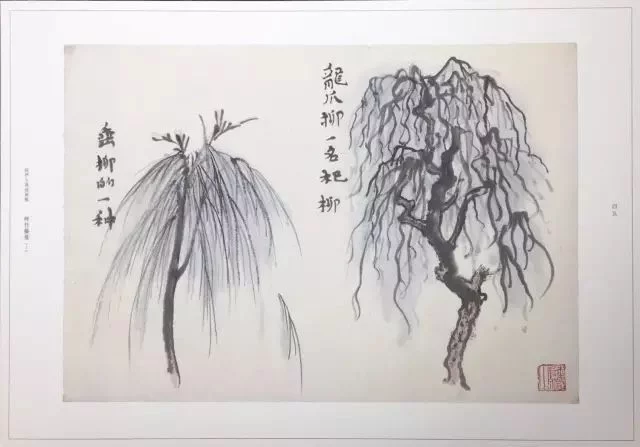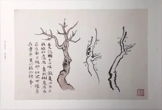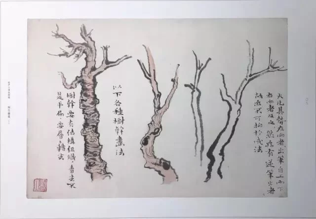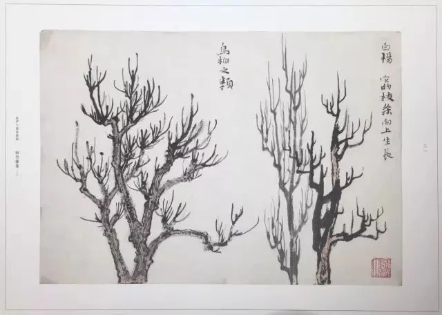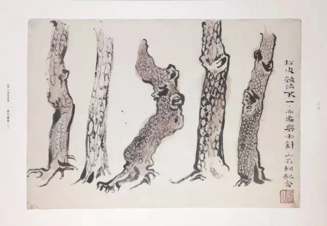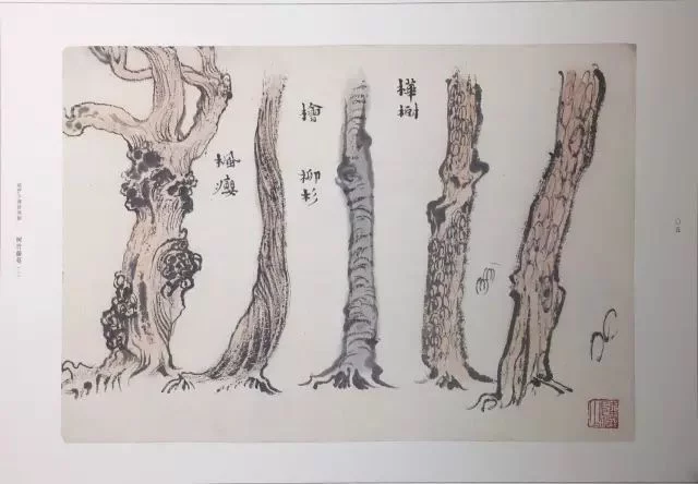 故亦不可拘于成法。 以下各种树干画法。 树干要有结构组织,看去不是平扁, 要层层转去。