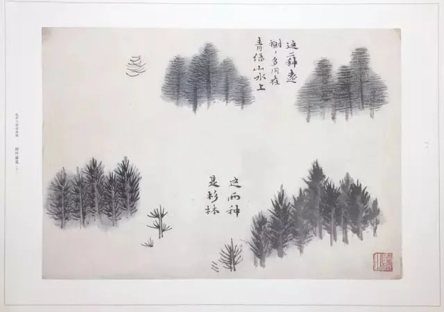 这二种远树,多用在青绿山水上。这两种是杉林。