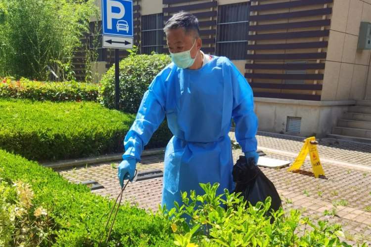 虹光路是一条长约1公里的断头路,由于封控管理以来,路面上有大量树叶杂物。下午2点,曙光村的村民志愿者们穿上“小蓝”,带上工具,来到此路段开展清扫行动。在村民志愿者近2个小时的努力下,路面逐渐恢复干净整洁。