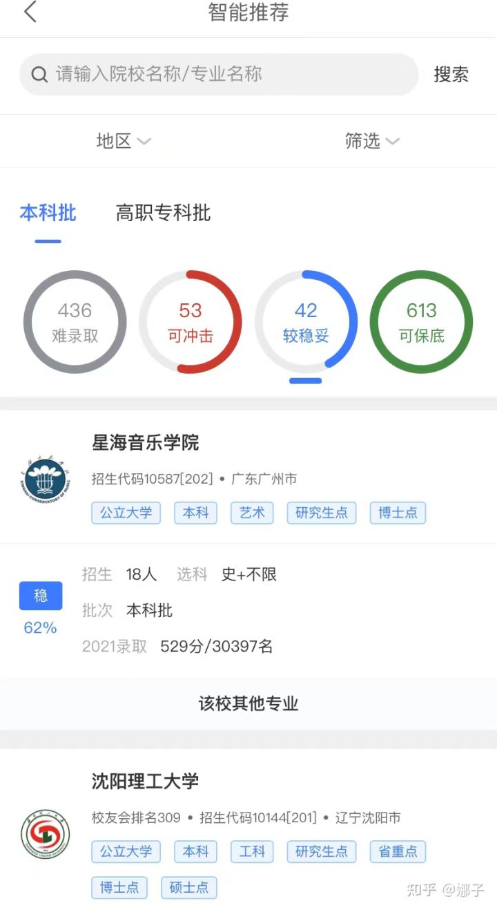 高考志愿填报在大数据计算后,主页面会根据你填入的资料推荐大学:可冲刺的学校、稳妥的学校、保底的学校