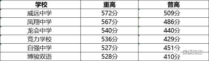 二、普通高中录取分数线