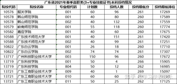 岭南师范学院:广东省2021年本科层次招收“3+专业技能课程证书”中职毕业生于2021年4月22日投档,投档118人,生源质量较高,为增加考生的就读机会,我校充分挖掘办学潜力,追加招生计划,但受办学条件限制无法全部录取职业技能测试合格考生。原计划50人,录取55人,退档63人,我校录取最低综合分为340.78分。