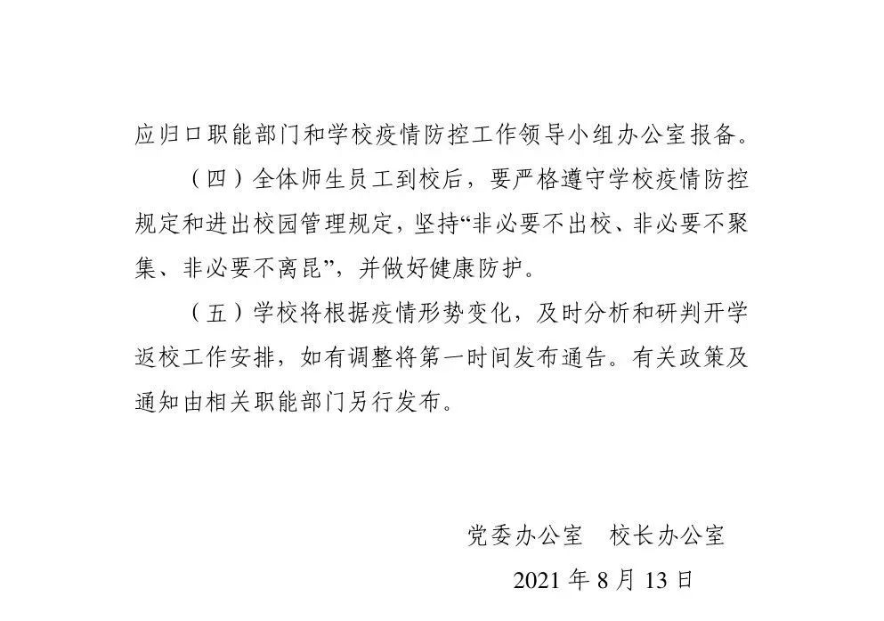3.自2021年8月14日起在市内低风险地区居住的学生于2021年8月28日-8月29日返校报到。