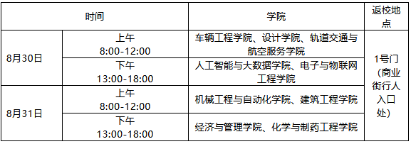 第四批:8月31日,汽车与智能制造工程学院、智慧城市建设学院、商务管理学院2019、2020级学生(含转段录取学生)到校报到;