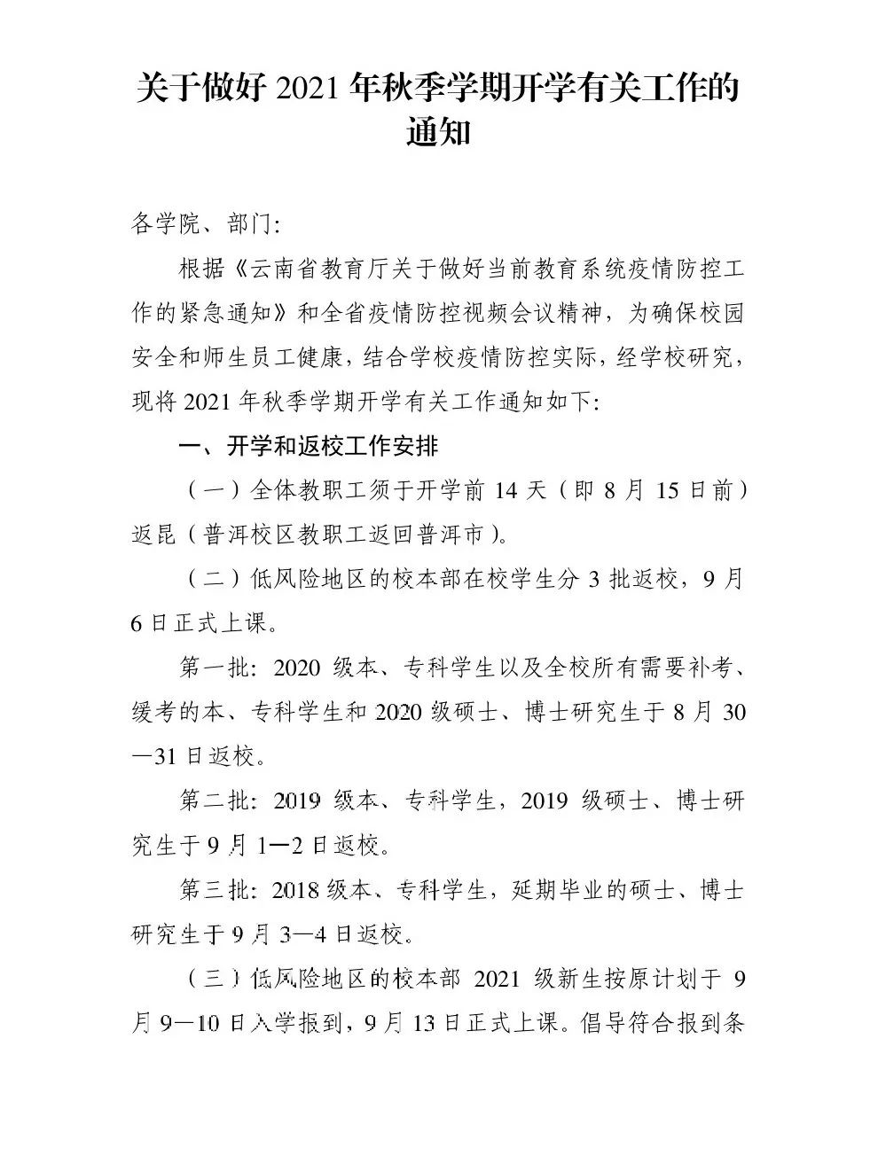 1.要求:8月1日以后旅居云南省内(不含25个边境县)低风险地区的2021级新生(含本科生、专升本学生和第二学位的学生)