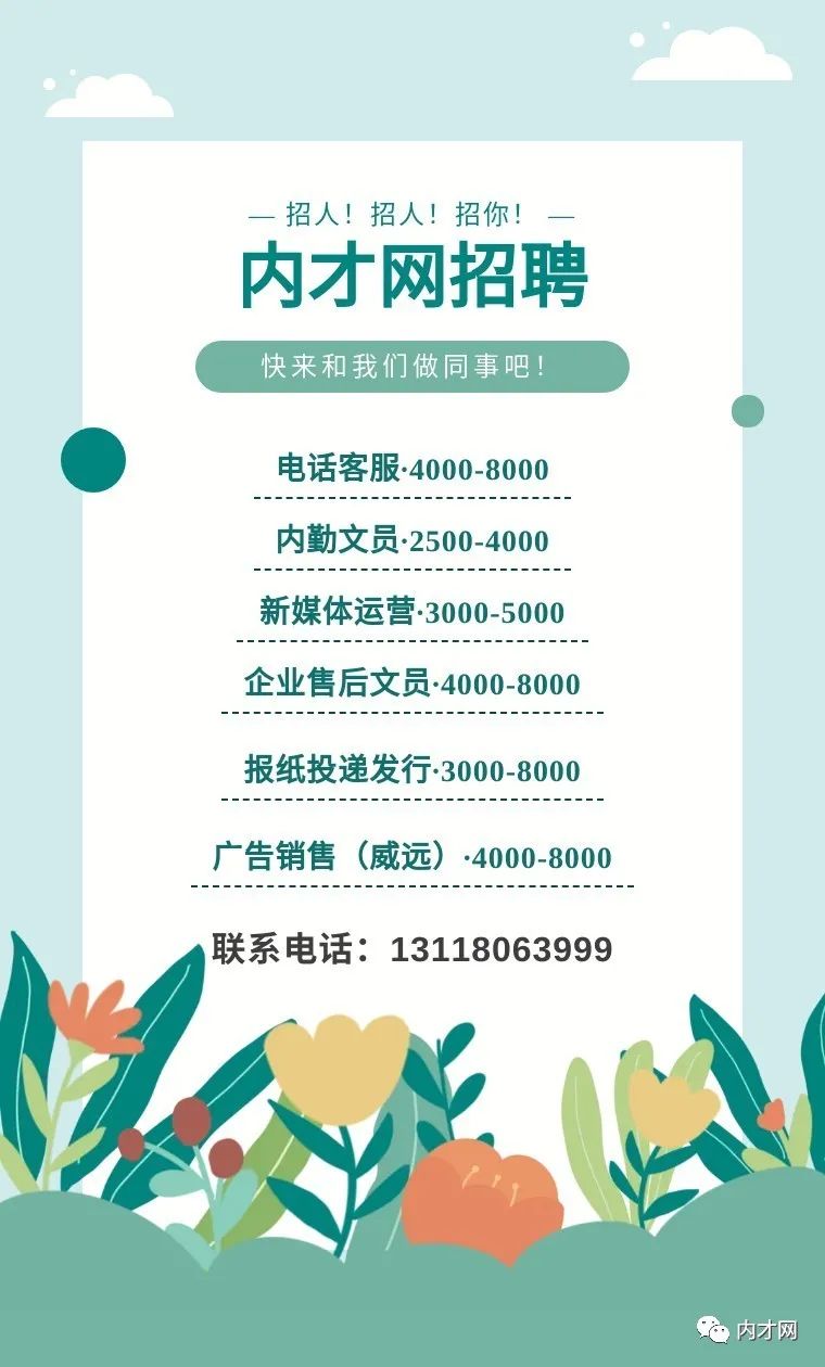 岗位职责:25岁以下,男女不限,大专及以上学历(可接受优秀应届生),薪资3000 福利待遇:8小时工作制(...