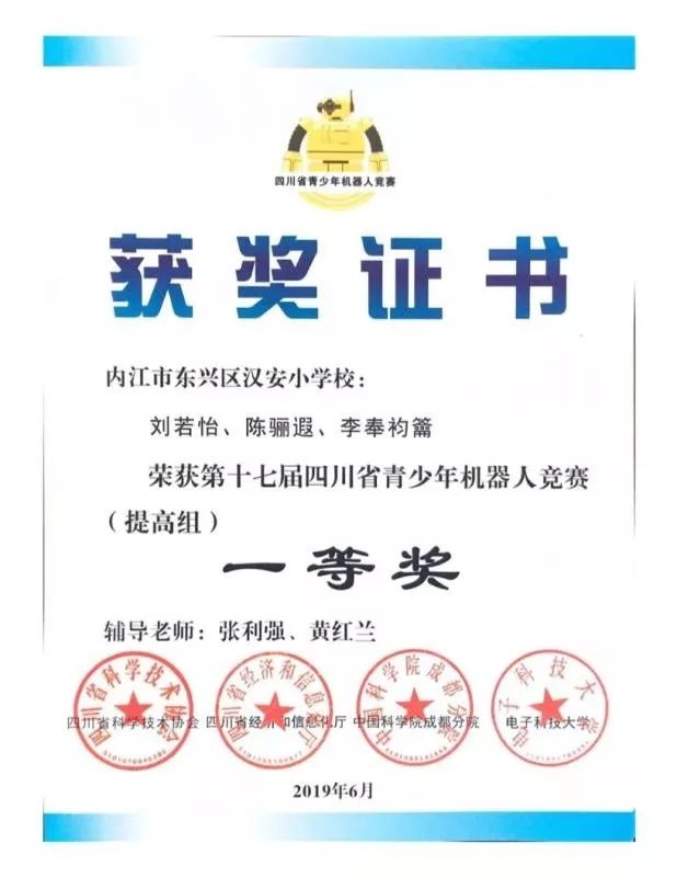 ■ 2019年5月,瓦力工厂带领小学员参加四川省青少年机器人竞赛,获得一等奖、三等奖。