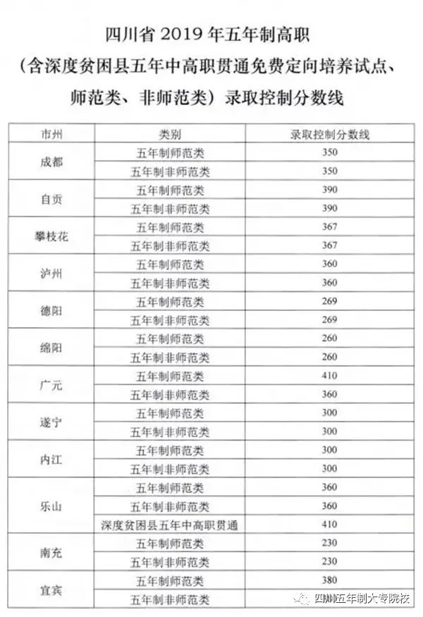 附录:2019年四川五年制大专录取分数线