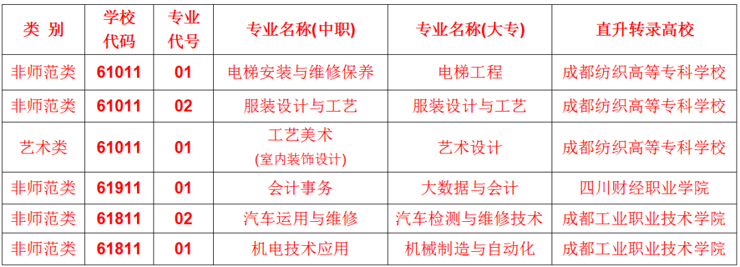 考生一定要了解清楚第四年转录到大学是读哪个专业?如:四川省服装艺术学校与南充中专都和四川财经职业学院联合举办会计事务五年制高职,中职阶段都是会计事务专业,但转录到大学的专业就有变化,四川省服装艺术学校转录到大学的专业为大数据与会计,而南充中专转录到大学的专业为大数据与财务管理。