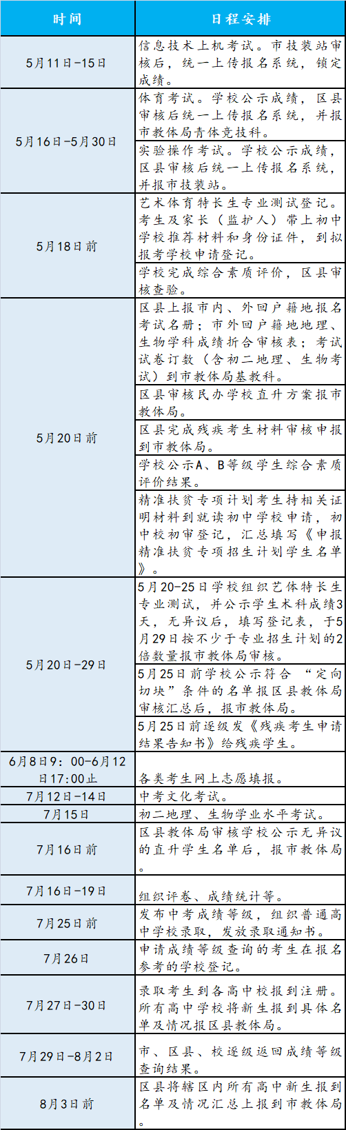 除此之外以下2020年中考安排请广大考生及家长注意: