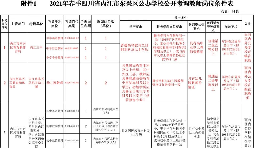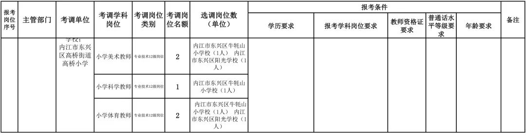 1. 2021年春季四川省内江市东兴区公办学校公开考调教师岗位条件表.xls