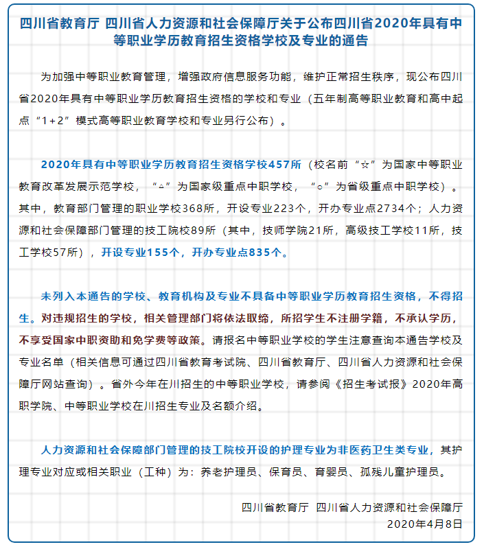 2020年具有中等职业学历教育招生资格学校及专业名单