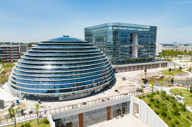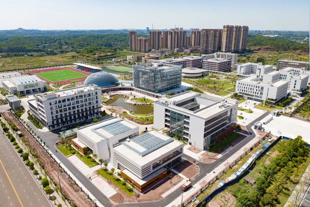 8月12日上午,内江市高级技工学校新校区项目建设现场,工人们正在进行清洁、设施安装以及绿化等收尾工作,项目规划建设的15栋单体建筑和附属设施已全面完工。从正门进入小区,首先映入眼帘的就是一栋半球体造型的建筑,在阳光下与周边的综合楼、培训中心相互呼应、分外抢眼。