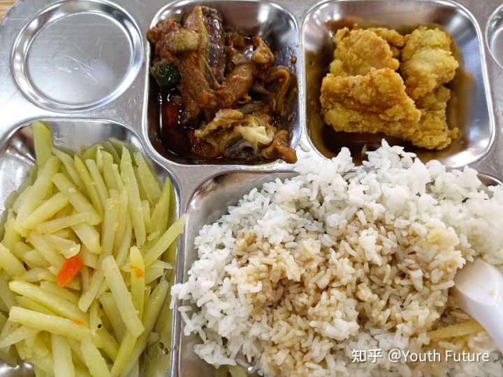 学校食堂有一楼和二楼,一楼早餐有粥有面,有豆浆油条包子等,午餐和晚餐就只有饭,夜宵有鸡腿和鸡扒什么的,二楼的选择就比较多一点,早餐有面包酱香饼炒面炒河粉肠粉,午餐晚餐有麻辣烫、饭、汤类、螺蛳粉、可乐汉堡等,二楼也还有奶茶