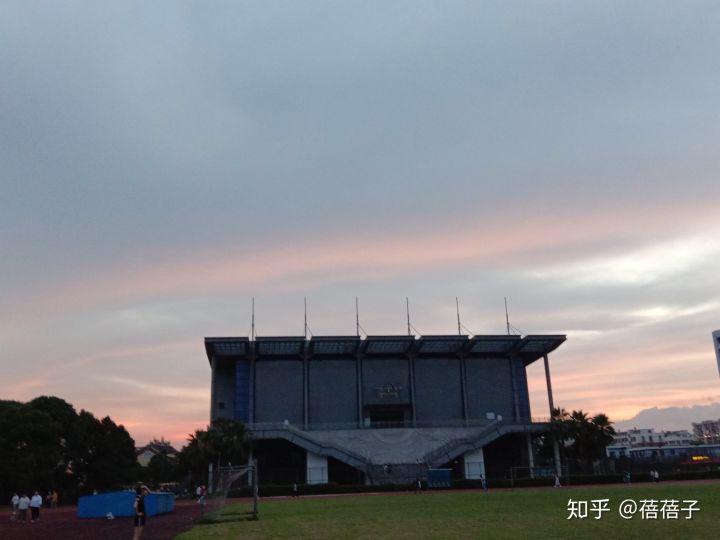 操场呢是在学校的另一边 天桥连接着 有羽毛球馆 网球场 篮球场(室内外都有)足球场 乒乓球场