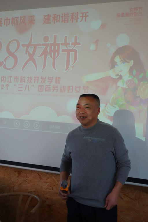 谈校长说:“我们科技开发学校的女职工,比列大。70%的女职工,你们用汗水铸成了学校发展的丰碑,创造了学校一个又一个辉煌。在平常的工作中,你们爱岗敬业、严于律己、为人师表、率先垂范、内强素质、外树形象、独当一面,不愧为上得厅堂、下得厨房的贤妻良母。你们舍小家,顾大家,起早贪黑,默默无闻,任劳任怨,你们在教育管理和教育服务的竞争中,忙教育,忙教学,你们用勤奋工作和突出成绩证明了自己的人生价值,赢得了学生、家长和社会的承认和广泛赞誉。可以说,在家庭,你们用繁琐家务吟唱着一首温馨的小曲;在学校,你们用平凡的工作谱写着一曲奉献之歌。因此,我代表学校对各位女职工为家庭、为学校、为社会所付出的劳动和心血表示衷心的感谢!