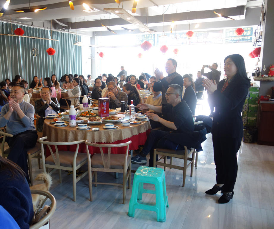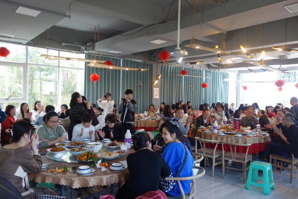 在中午聚餐时,校长谈敏丽代表学校党、政、工、团向学校的全体女教职工致以节日的祝贺。