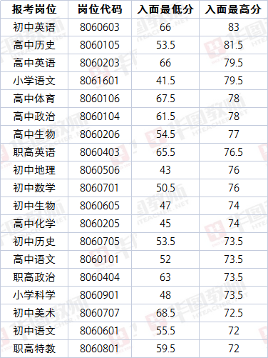 市中区最高分80.5,最低分40.5分。其中8个岗位最低入面分60分以下,8个岗位最高入面分70以下,其中8022201初中体育岗位,最高分56.5,最低入面分仅40分。