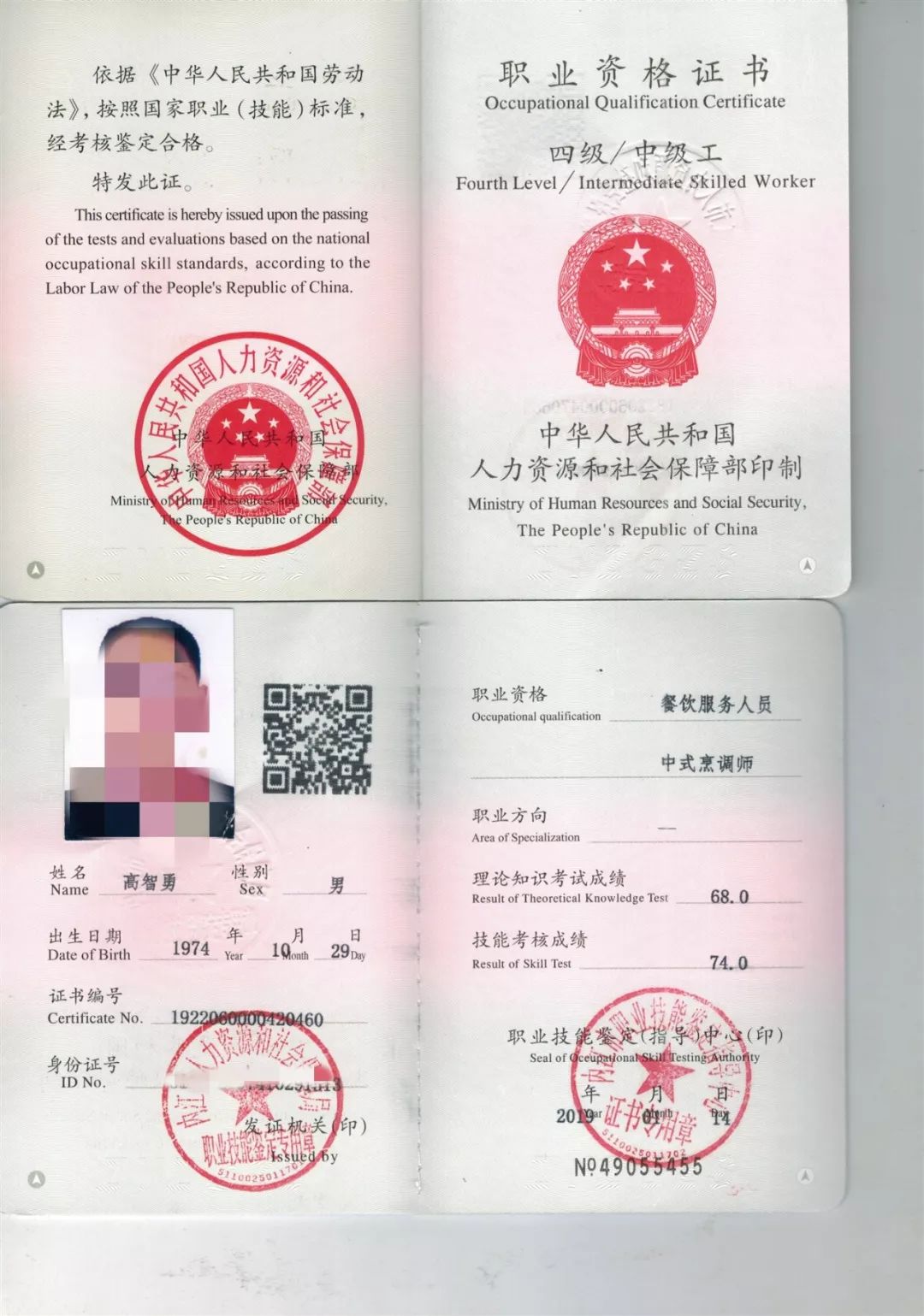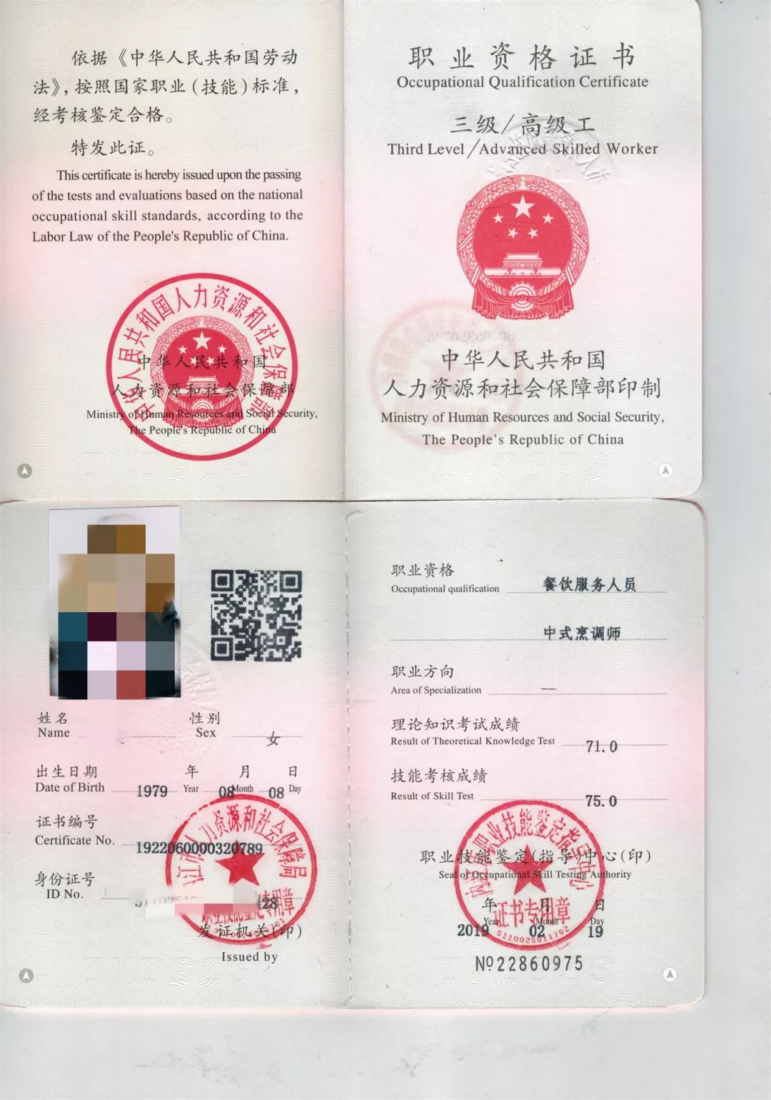学员经考核合格颁发《中华人民共和国职业资格证书》,此证全国通用,出国有效。