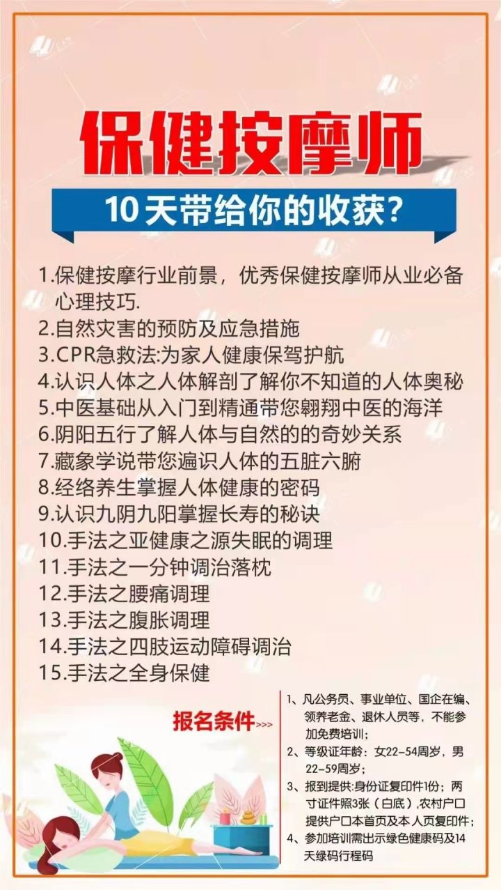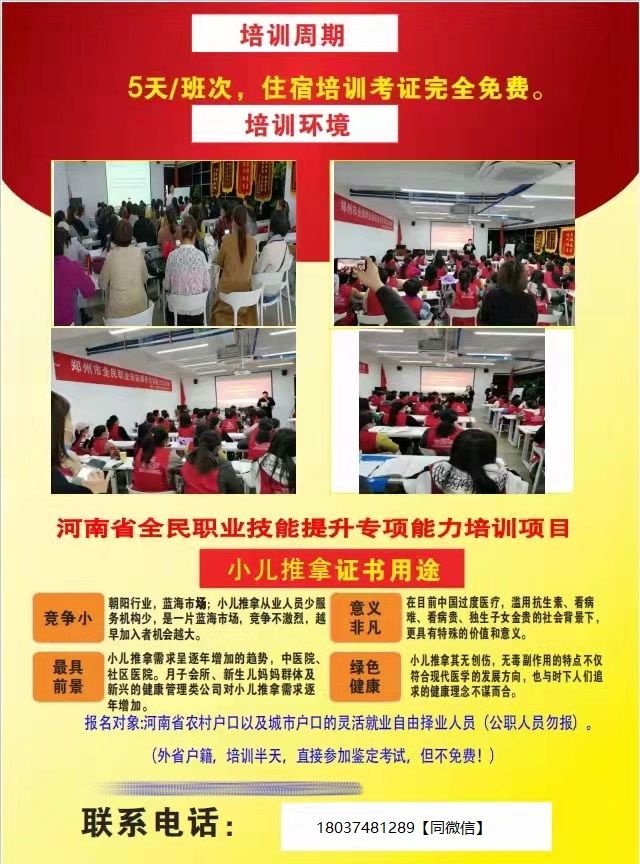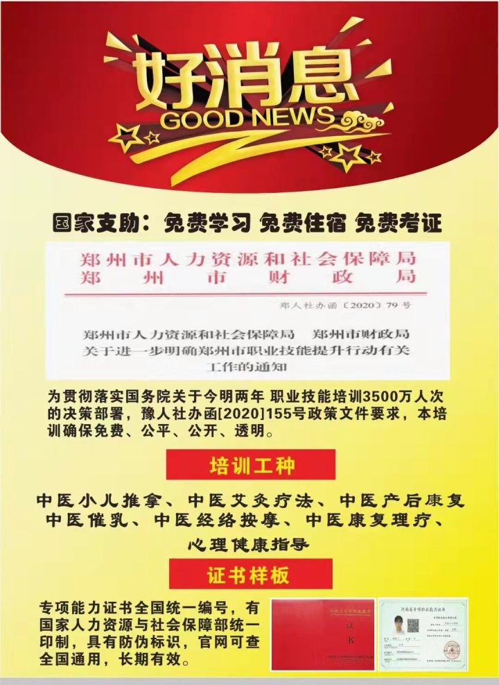 专项能力:中医小儿推拿、中医康复理疗、中医经络按摩、中医产后修复、中医催乳、中医艾灸疗法、员工关系管理、电商直播,老年人照护、婴幼儿照护。