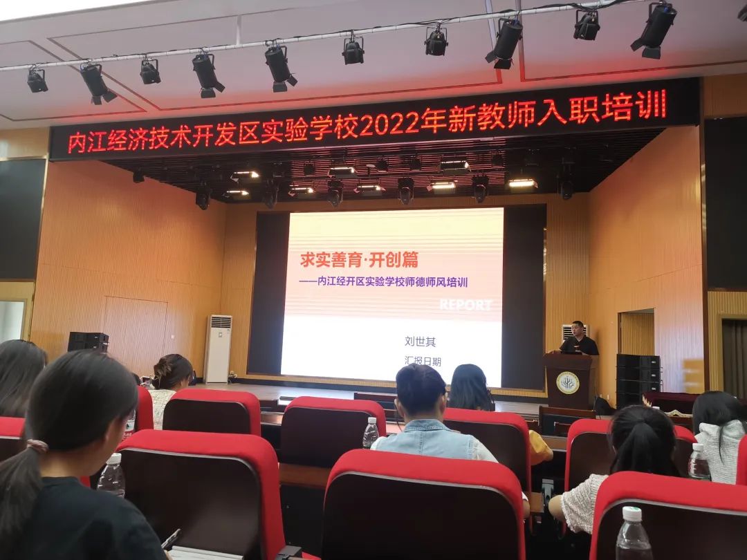 2022年8月30日,在内江经济技术开发区实验学校教科室副主任吴虹丽的主持下在学校学术报告厅如期开展,学校行政人员及2022年新入职教师共同出席了本次培训会。