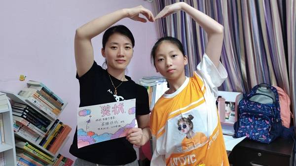 如果说家长们的表白寄托着期望和爱,那孩子们的爱则在俏皮个性化的表达中缓缓流淌。初二(6)班柴筱萌亲手绘制了古朴的奖状,她给外婆颁发了“王进喜”奖。收到外孙女亲手制作的奖状,62岁的外婆咧开嘴笑了,这是她收到的第一张奖状。“她是个闲不下来的人,就像铁人一样似乎永远不知疲倦,照顾着我和家人。”打柴筱萌记事起,外婆就一直忙进忙出,张罗饭菜、操持家务,家里大大小小的活儿都抢着做。“其实是因为爱。”性格内敛的柴筱萌说,特殊的日子,她也想跟外婆说一声“我爱您”。