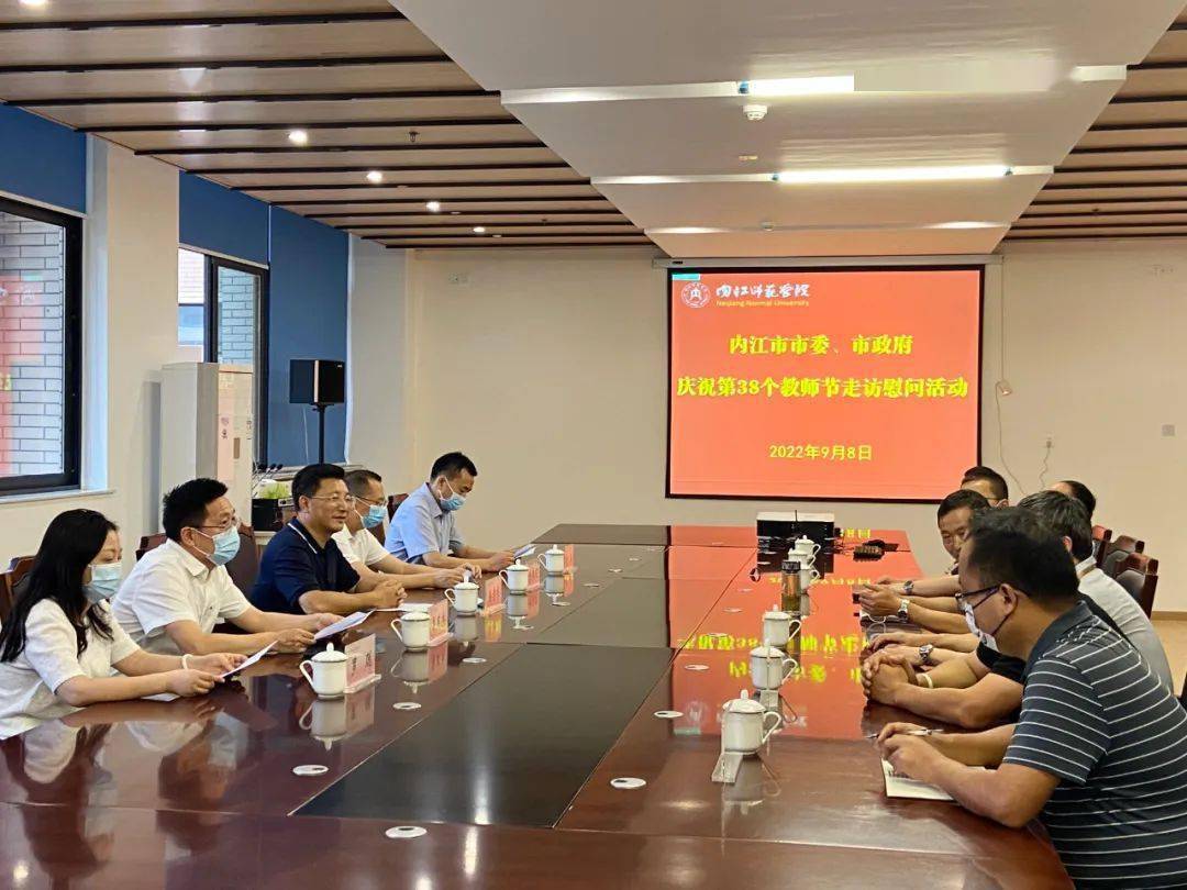 慰问组走进内江市第三幼儿园、内江市桐梓坝小学校、内江市第一小学校、东兴区外国语小学校、内江市第二中学、内江市第六中学高新校区、内江师范学院高桥校区和内江职业技术学院,看望慰问教师代表,感谢广大教师为内江教育事业发展的辛勤付出和无私奉献,并通过参观现场、听取介绍、座谈交流等方式,了解各个学校的特色教育、设施建设、招生工作、师资力量、疫情防控等情况,对教学环境、办学能力、精细化管理和教师队伍建设工作等给予充分肯定。