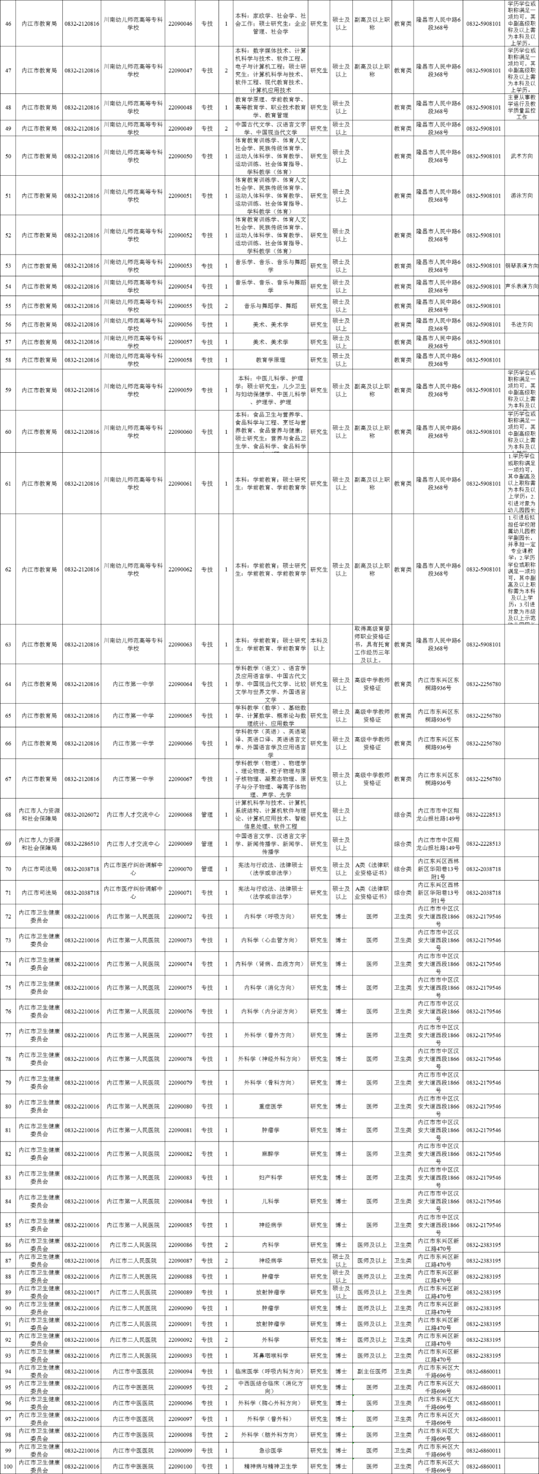 四川省内江市2022年上半年“甜城英才”