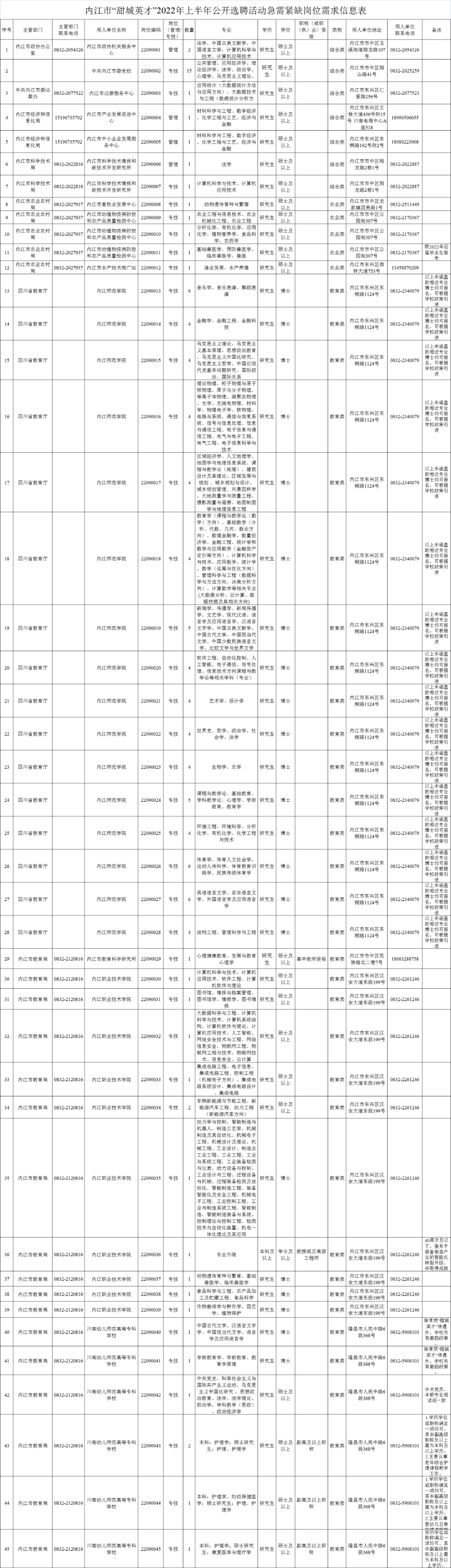 6月14日,条条君从内江人事考试网了解到,内江市2022年上半年“甜城英才”公开选聘活动即将开始,详情如下: