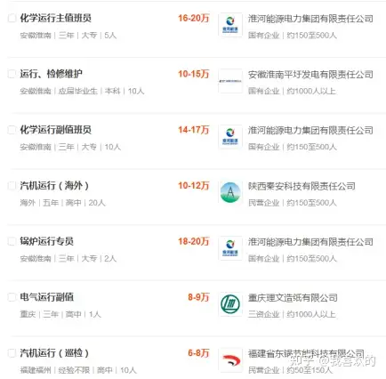 电厂热能属于电力行业,毕业生就业也多偏向国企,如行业中著名的“五大四小”、“两大电网”等。一般应届毕业生进入电厂后都是从事运行岗位,职业发展路线是从巡检→副控→主控→值长,再晋升就是运行部副部长和部长,属于电厂中层。运行工作比较特殊,需要轮班和倒班,比较辛苦。很多毕业生选择考电网,电网工作没有发电类的辛苦,但考电网难度较高,大多也只要电气工程及其自动化专业。