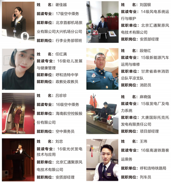 会计事务所、各类企事业单位从事公司会计职务、各类企事业单位从事公司内部审计、政府机构会计。合作企业有兴业银行、招商银行、内蒙古银行、天津航星永志等。无人机应用技术