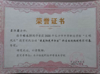 长沙市中等职业学校“文明风采”活动朗读者比赛“三等奖”