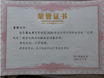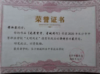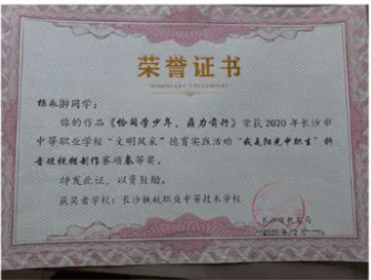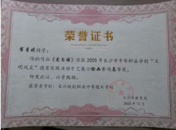长沙市中等职业学校“文明风采”才艺作品评选中瞿曼婷同学,黄奕致同学荣获“三等奖”