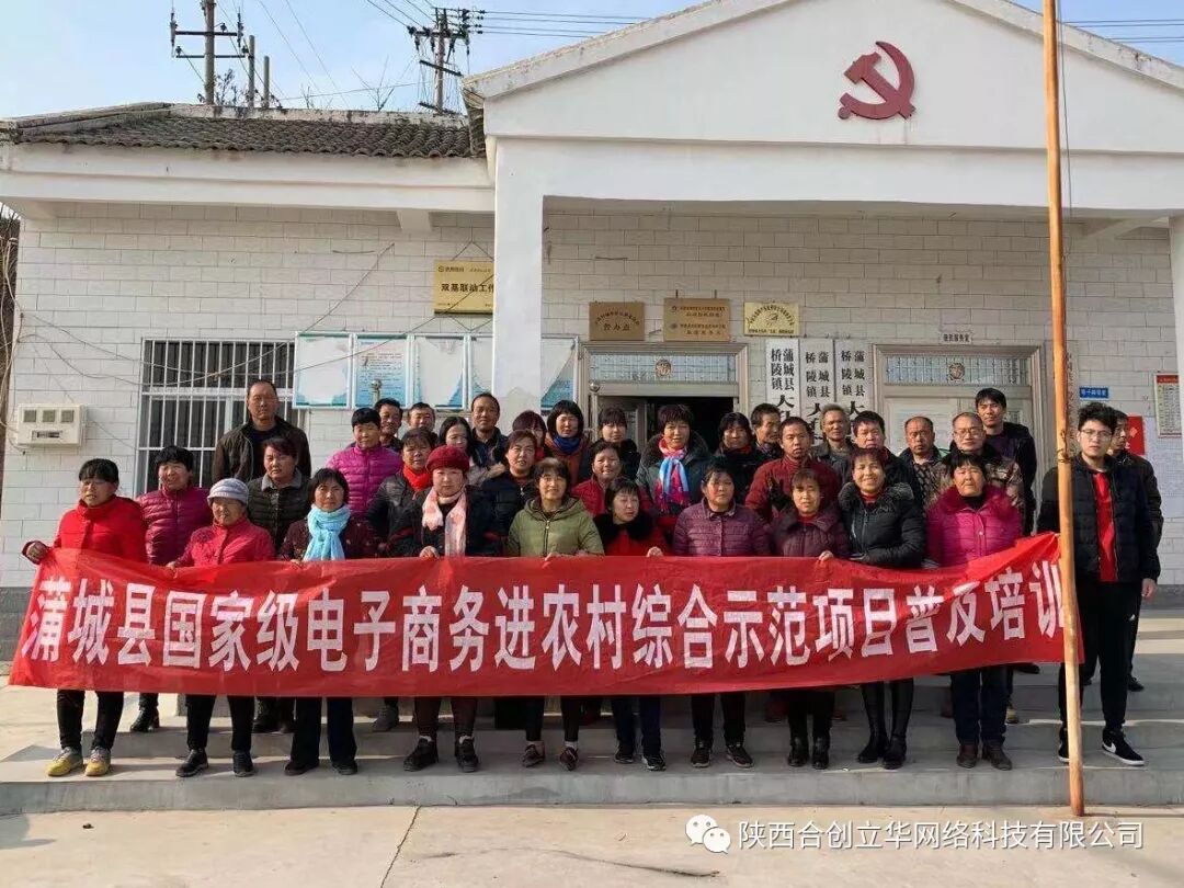 为深入学习贯彻党的十九大和中央一号文件精神,推动农村电子商务深入发展,促进农村流通现代化,助推脱贫攻坚和乡村振兴,由蒲城县商务局主办,陕西合创立华网络科技有限公司承办的“蒲城县国家级电子商务进农村综合示范项目普及培训”在蒲城县各村镇如火如荼进行。