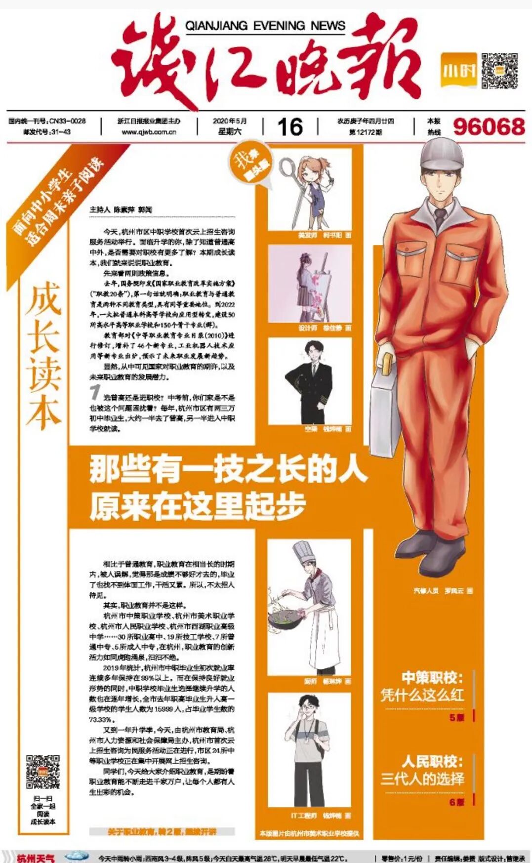 今天出版的“成长读本”聚焦职校教育,除看报纸外,登录钱江晚报官方APP“小时新闻”也可以看以下更多内容: