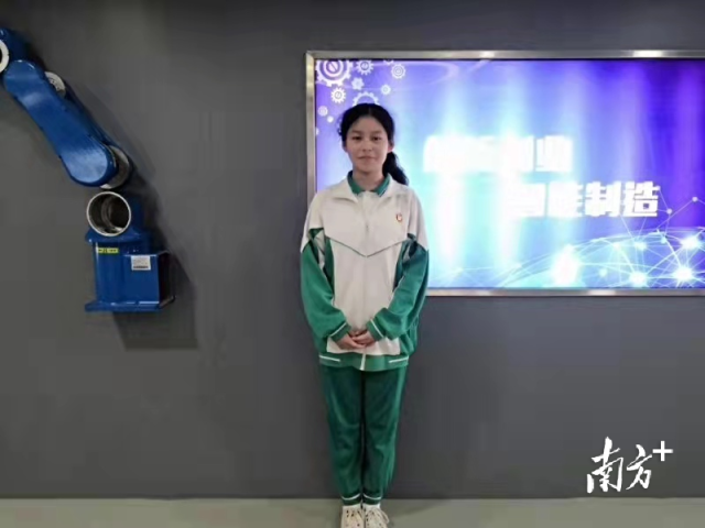 刘至文选择的是机器人应用与维护专业。“我小时候喜欢玩小机械臂,偶尔也学编程。随着社会的不断发展,步入人工智能时代,机器人这类新东西让我非常感兴趣。”刚高一入学学校举办集训队,刘至文就踊跃报名参加并成功入选,在左湘老师的指导下,获得广东省柔性制造及信息集成技术应用赛项二等奖。