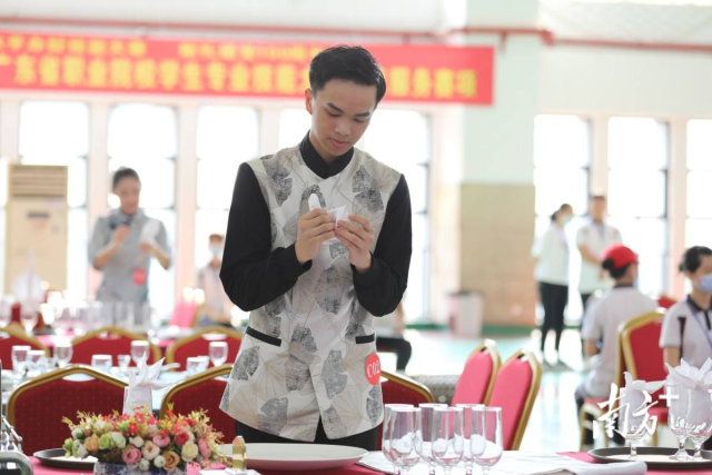 这些看似简单的技能,是潘明强每天都需要高强度训练的项目,追求的是广东省乃至全国最优秀的服务与最高的标准。“我之所以喜欢这些东西,是因为我特别享受这个凭借着自己努力慢慢进步的过程。”潘明强说。
