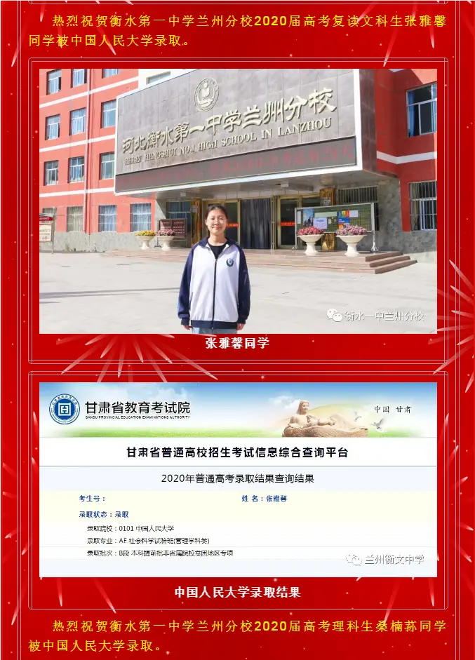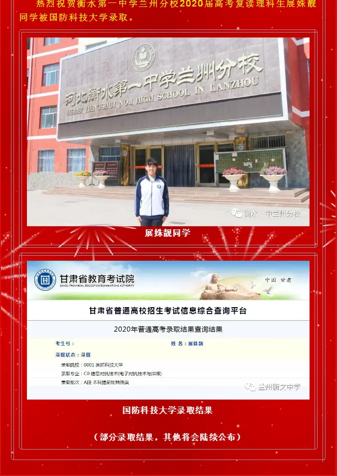 祝贺衡水第一中学兰州分校2020年