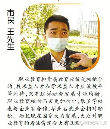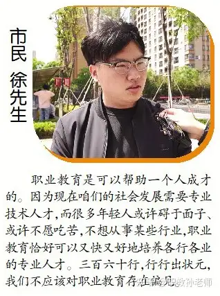 市民马杰曾被这个故事深深激励。他毕业于青岛某家职业技术学院,现在在济南一家制造业私企工作。在他看来职业教育在很大程度上能解决毕业后的就业问题,“我当初毕业后直接进入学校对口的企业工作,虽然起点不高,但是积累了工作经验,后续跳槽时这也成为与学历不相上下的竞争资本。”马杰今年36岁,毕业时高校毕业生就业难的情况已经显现,他比同龄人更早稳定下来,“职业教育还有很多优势。比如,专注在某一个特定职业领域,可以针对不同学生的特点进行针对性培养,也许比在普通高校中学得更深、更精。”