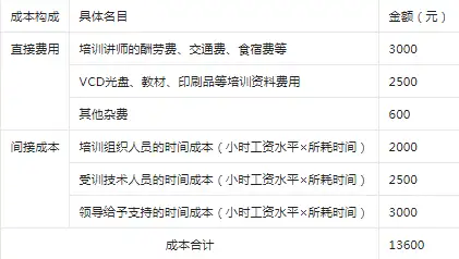 整个培训中,公司所发生的培训费用成本如下表所示。